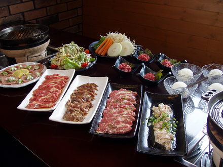 味付け肩ロース・塩ジンギスカン・ラムタン・塩ホルモン・味付マトン・サラダ・ユッケ・ご飯・焼き野菜・〆にお茶漬けもしくはジェラードがつきます。通常ですと、3000円程のお料理ですが送別会プランにつき、お一人様2500円でご利用できます!!